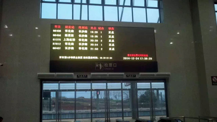 显示本站列车到发、候车等信息,根据需要引导旅客在显示屏发布候车检票内容、列车到发等信息,显示方式多样、画面清晰等效果可显示视频类信息,完成有线电视的直播功能。